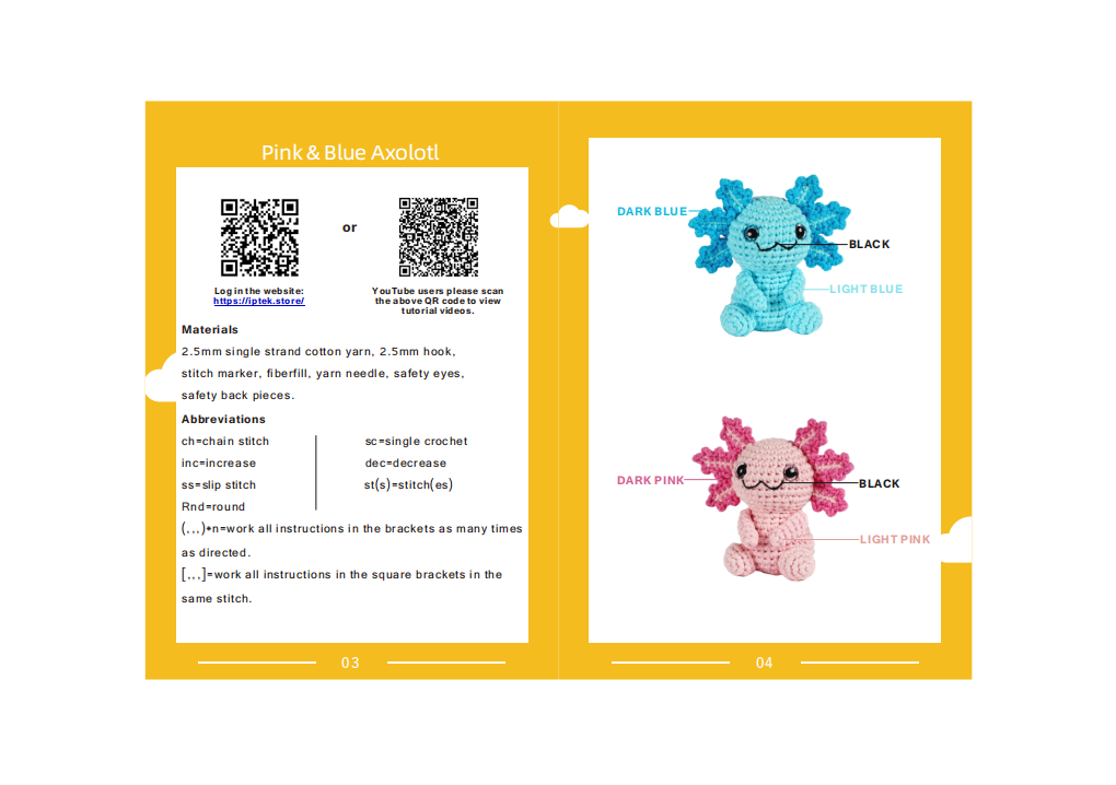 Crochet Kit|Mini Pink and Blue Axolotl