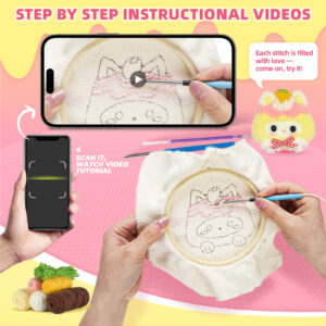 🛍️ All-Inclusive Kit – Comes with high-quality embroidery cloth, colorful yarn, a punch needle tool, a threader, an embroidery hoop, and both instruction booklets & video tutorials—ready to use right out of the box!