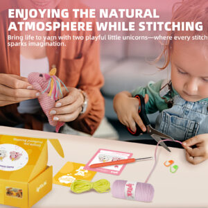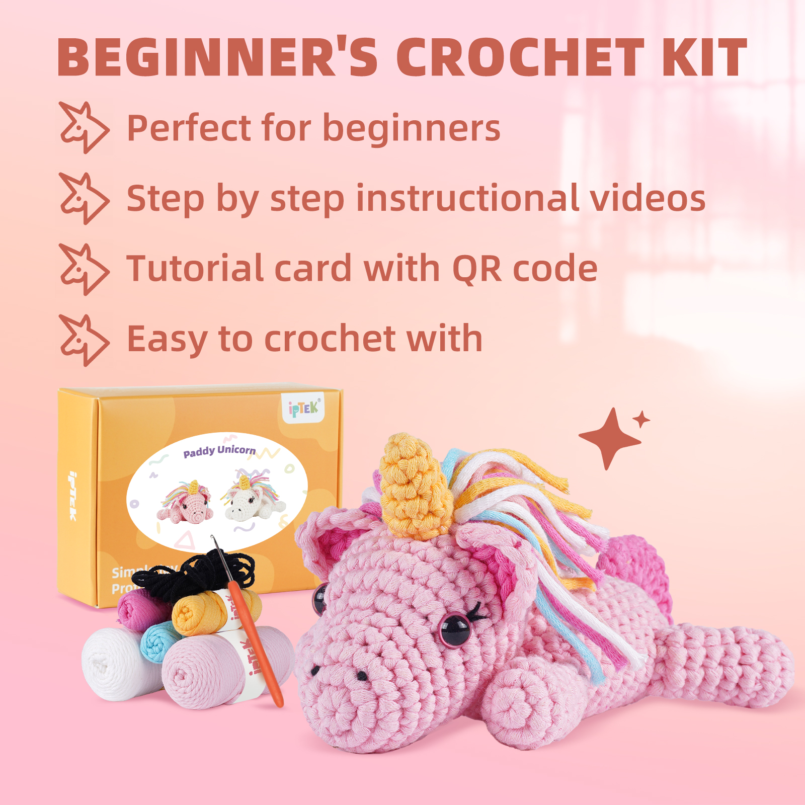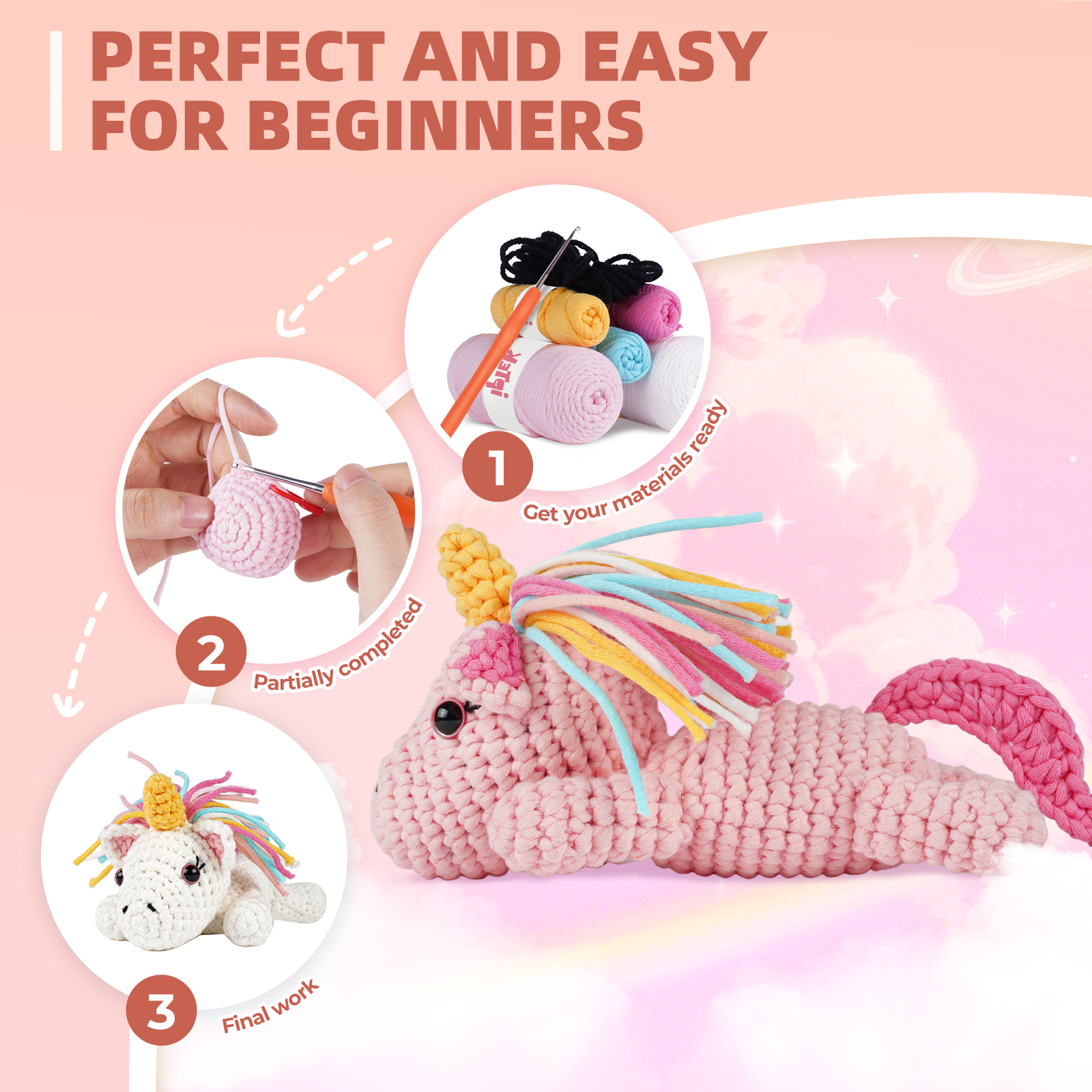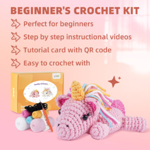 Includes everything you need: an ergonomic crochet hook, soft beginner-friendly yarn, stitch markers, safety eyes, a blunt needle, stuffing, plus detailed PDF and video tutorials—no extra supplies needed!