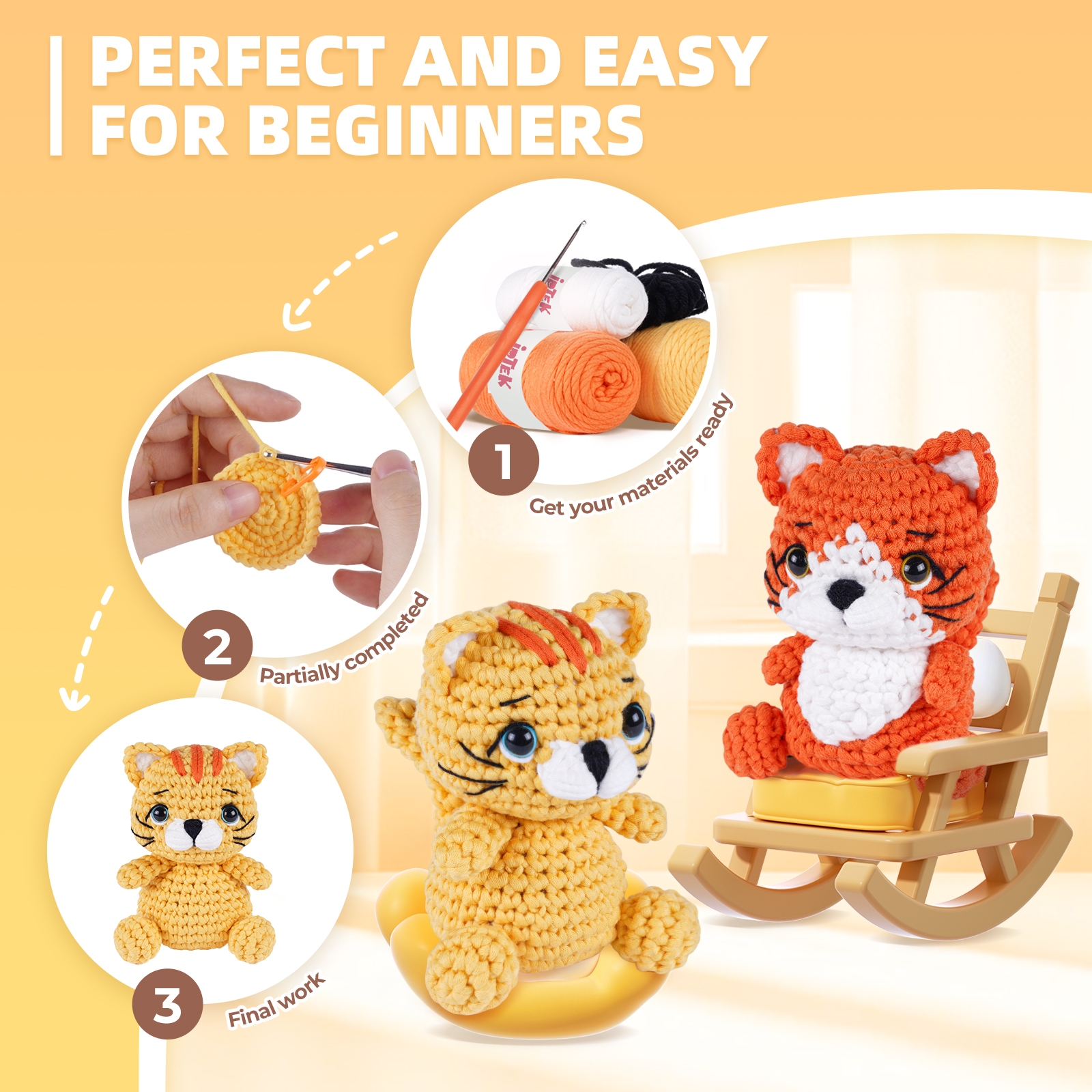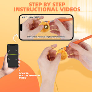 Includes everything you need: an ergonomic crochet hook, soft beginner-friendly yarn, stitch markers, safety eyes, a blunt needle, stuffing, plus detailed PDF and video tutorials—no extra supplies needed!